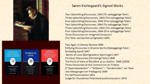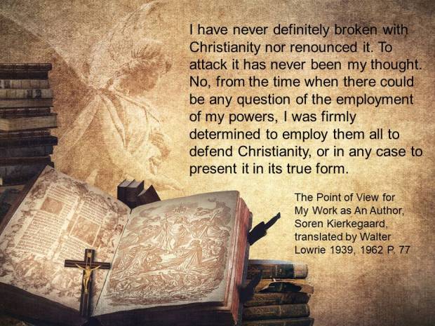 Kierkegaard’s category as a writer was “without authority”, he was neither parson nor professor so he wanted to persuade with the truth alone. He says to the reader, “Judge for Yourself”.