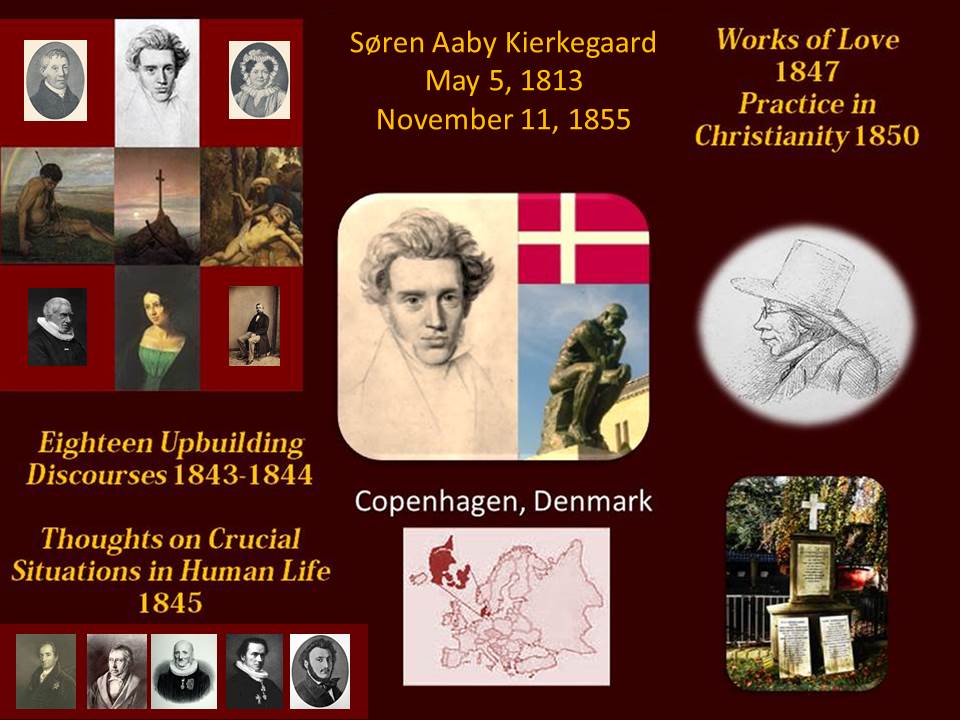Søren Kierkegaard was a Christian author who was against applying the ideas of the Scientific Enlightenment to Christianity. He lived in Denmark from 1813 to 1855. His works were written to the single individual who might be interested in reading them. He was against Christian nationalism.