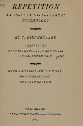 Repetition: an essay in experimental psychology, translated by Walter Lowrie 1941 Princeton University Press