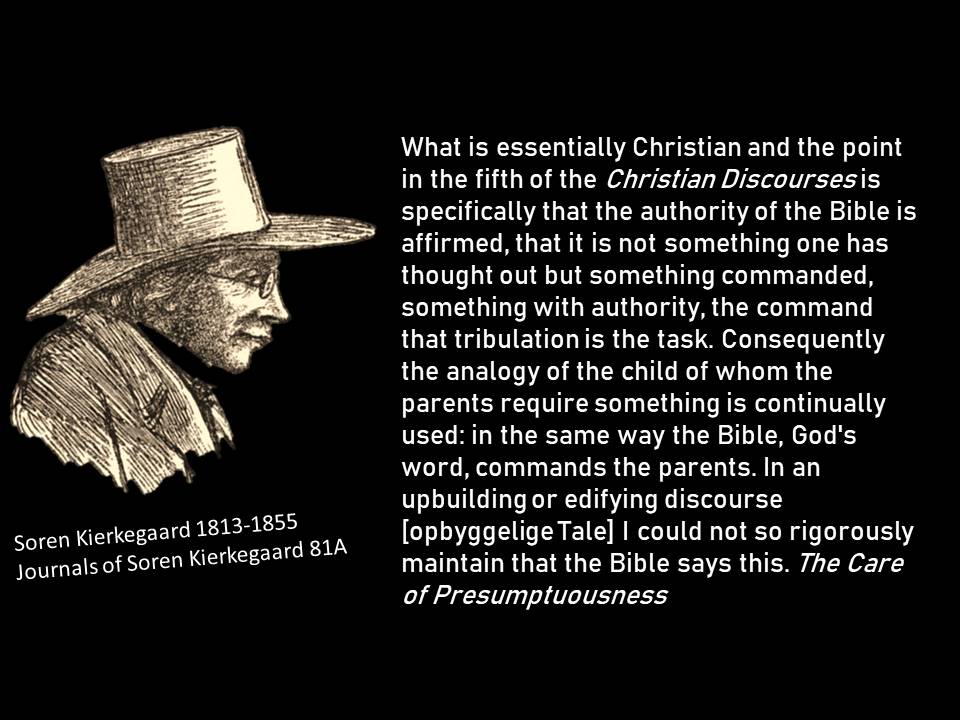 These words will be the basis for the following discourse: But it is blessed – to suffer mockery for a good cause, in order that really for upbuilding we might become aware of the comfort, or rather, the joy, that Christianity proclaims, because these discourses are for upbuilding even if they, as is said, wound from behind. (p. 223) The essentially Christian needs no defense. (p, 161)