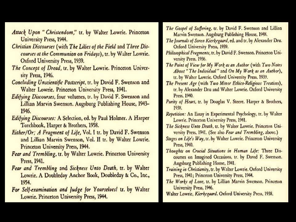 Søren Kierkegaard was a Christian author who was against applying the ideas of the Scientific Enlightenment to Christianity. He lived in Denmark from 1813 to 1855. His works were written to the single individual who might be interested in reading them. He was against Christian nationalism.