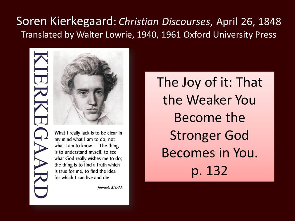 Søren Kierkegaard was a Christian author who was against applying the ideas of the Scientific Enlightenment to Christianity. He lived in Denmark from 1813 to 1855. His works were written to the single individual who might be interested in reading them. He was against Christian nationalism.