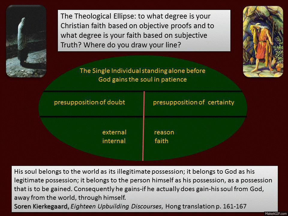 Søren Kierkegaard was a Christian author who was against applying the ideas of the Scientific Enlightenment to Christianity. He lived in Denmark from 1813 to 1855. His works were written to the single individual who might be interested in reading them. He was against Christian nationalism.
