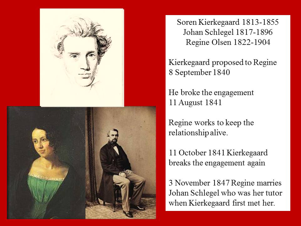 Søren Kierkegaard was a Christian author who was against applying the ideas of the Scientific Enlightenment to Christianity. He lived in Denmark from 1813 to 1855. His works were written to the single individual who might be interested in reading them. He was against Christian nationalism.