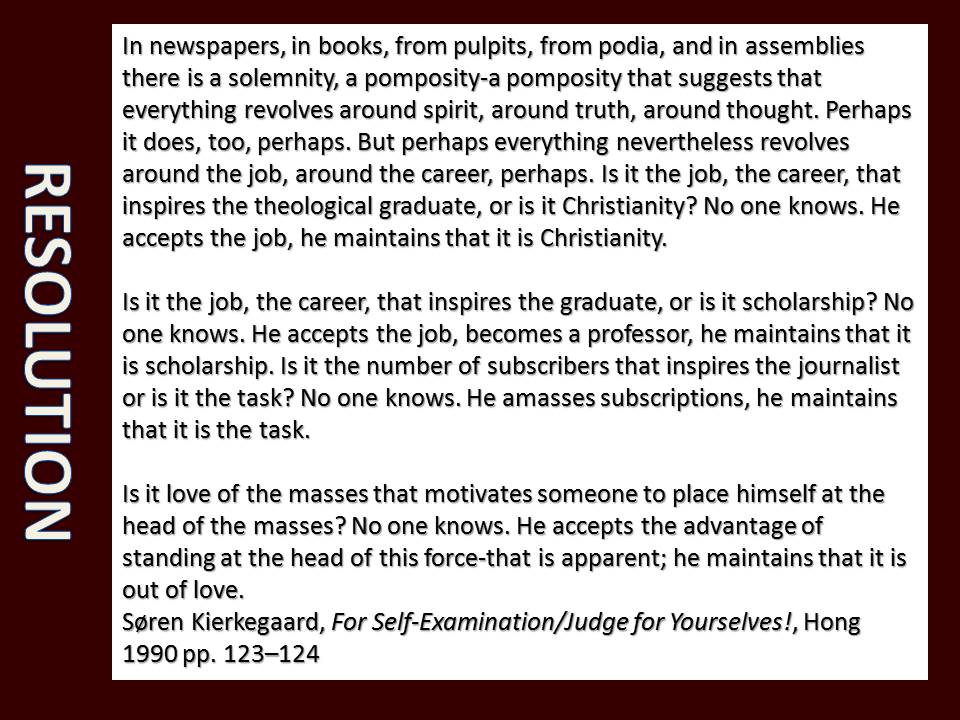 Søren Kierkegaard was a Christian author who was against applying the ideas of the Scientific Enlightenment to Christianity. He lived in Denmark from 1813 to 1855. His works were written to the single individual who might be interested in reading them. He was against Christian nationalism.