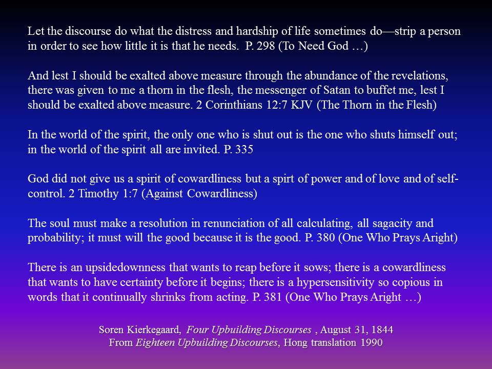 Søren Kierkegaard was a Christian author who was against applying the ideas of the Scientific Enlightenment to Christianity. He lived in Denmark from 1813 to 1855. His works were written to the single individual who might be interested in reading them. He was against Christian nationalism.