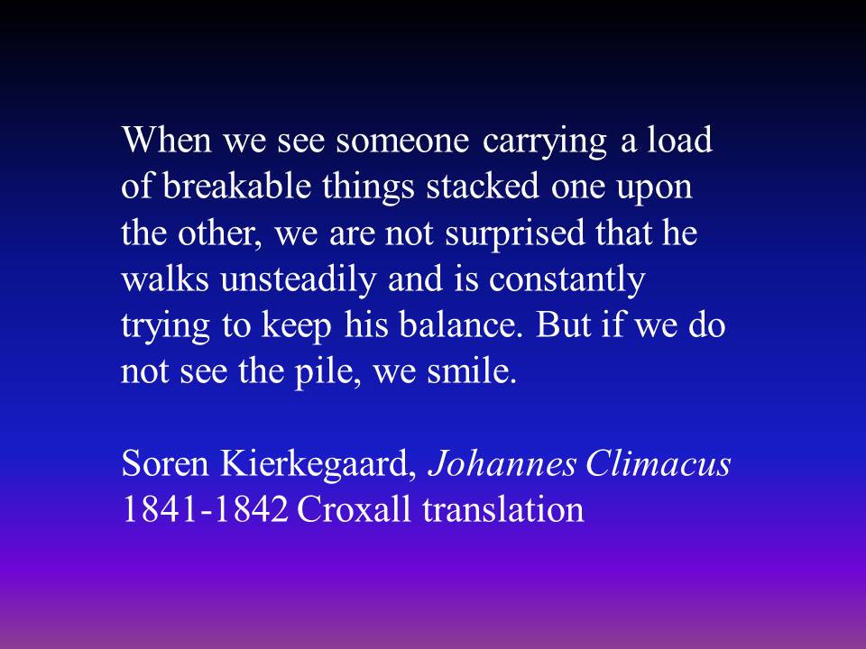 Søren Kierkegaard was a Christian author who was against applying the ideas of the Scientific Enlightenment to Christianity. He lived in Denmark from 1813 to 1855. His works were written to the single individual who might be interested in reading them. He was against Christian nationalism.