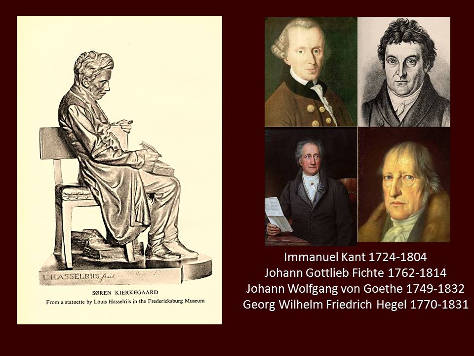 Søren Kierkegaard was a Christian author who was against applying the ideas of the Scientific Enlightenment to Christianity. He lived in Denmark from 1813 to 1855. His works were written to the single individual who might be interested in reading them. He was against Christian nationalism.