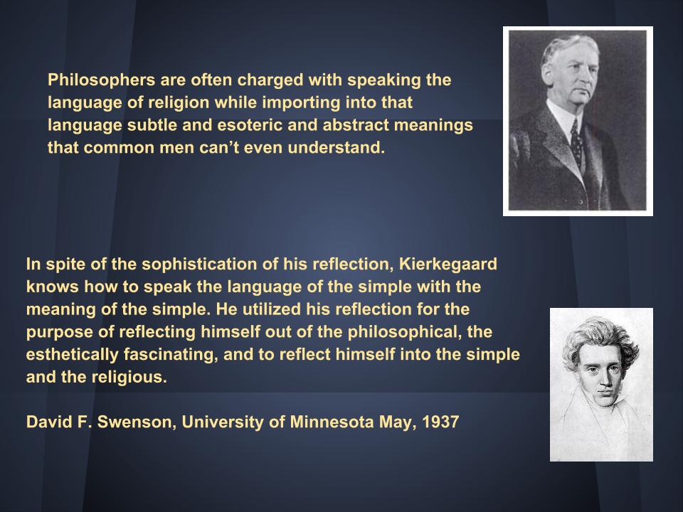 Søren Kierkegaard was a Christian author who was against applying the ideas of the Scientific Enlightenment to Christianity. He lived in Denmark from 1813 to 1855. His works were written to the single individual who might be interested in reading them. He was against Christian nationalism.